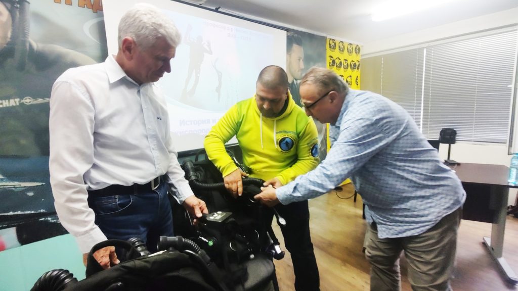 Стоян Димитров от сдружение „Приятели на морето – Бургас“ , водолазният инструктор от клуб „Scuba4stars“ Пламен Миховски и проф. д-р Никола Шопов обясниха особеностите при работа с водолазни системи със затворен цикъл на различни производители и посочиха какви са техните предимства и недостатъци, сравнени едни с други. Бяха коментирани принципите на работа на апаратурата.